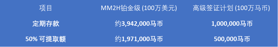 - MM2H铂金级:要求存入100万美元的定期存款。虽然前期资金要求较高,但免除了每月境外收入审计的要求,简化了长期合规程序。
